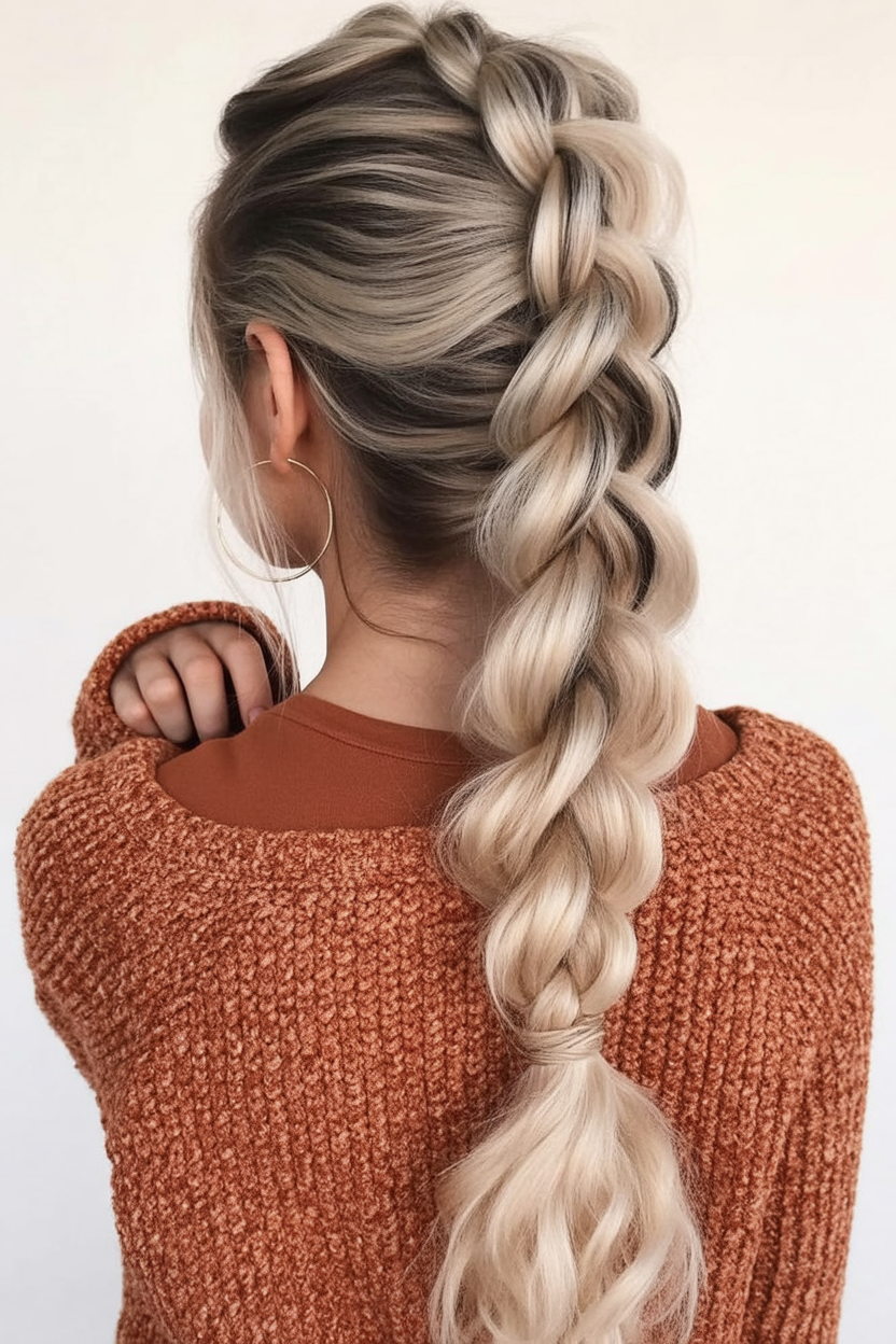 Big, fluffy, and impossible to ignore—this bubble-like braid is playful and perfect for cozy days. It looks like you spent hours on it, but it’s secretly one of the easiest styles out there.