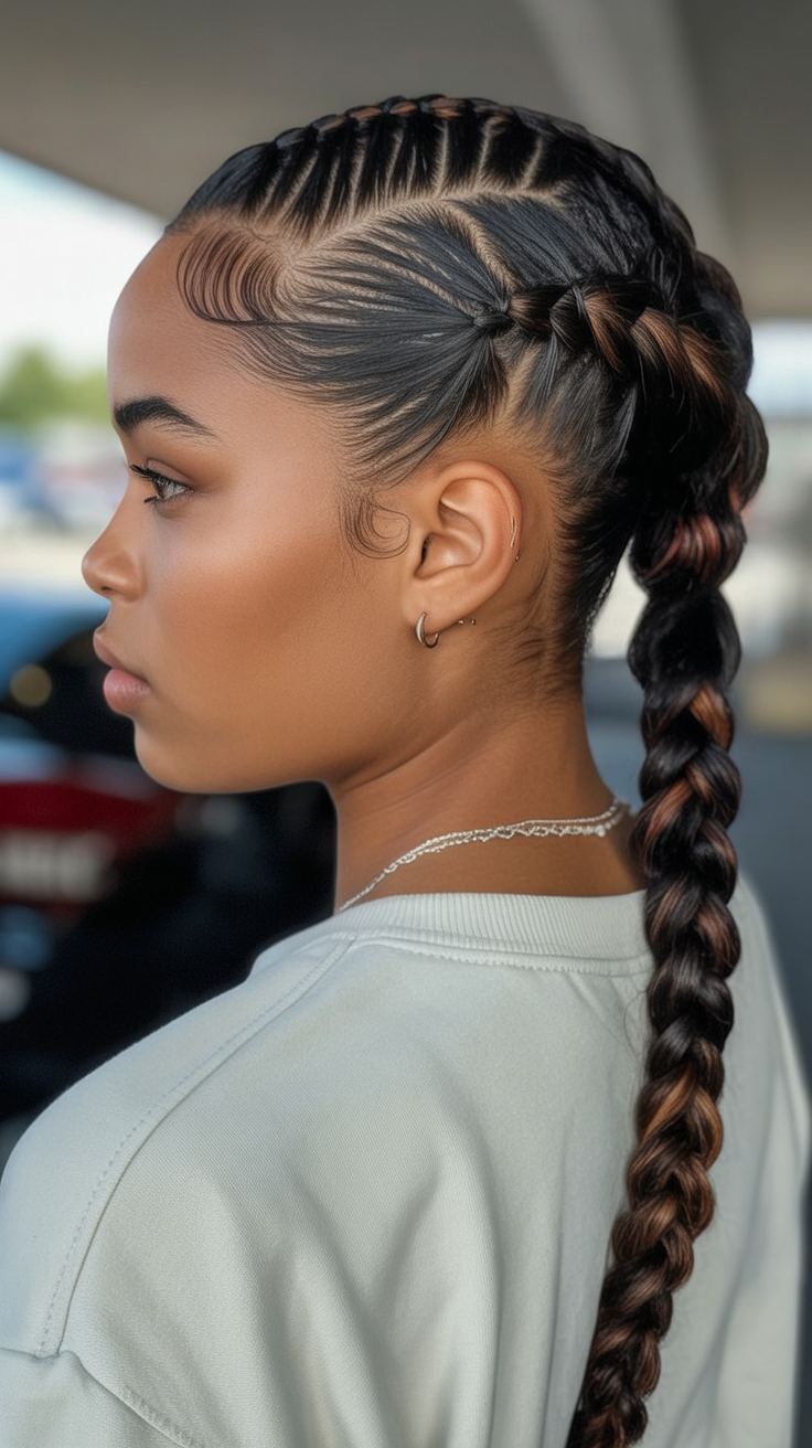 Ideal for black hair and anyone who loves low-maintenance hairstyles that last, this braided style is protective and stylish all at once. It’s especially great for busy women on the go, offering both function and flair with minimal daily upkeep.