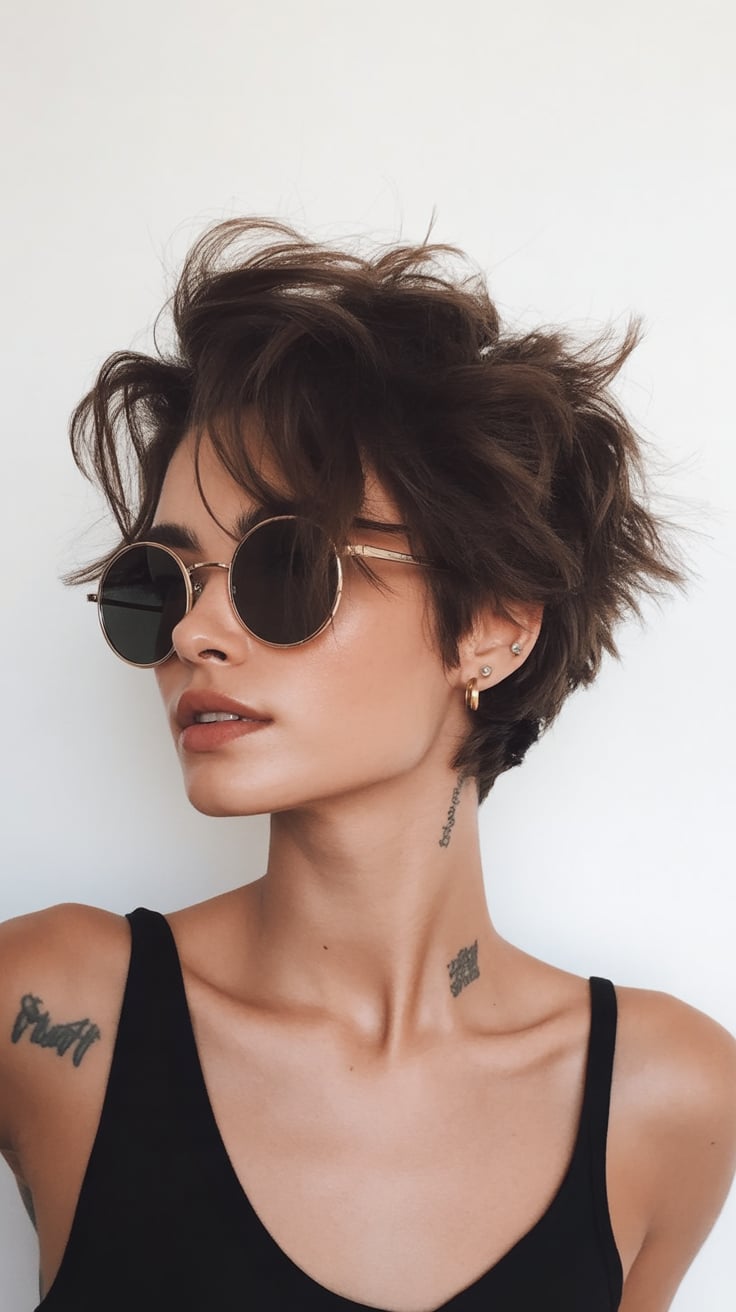 This breezy layered pixie-bob looks like a convertible ride on a sunny day—lifted crown, airy ends, and a fringe that can sweep or part. The texture is piecey without being messy, giving cheekbones a gentle spotlight and softening the jaw. It’s relaxed, cool, and endlessly wearable, the kind of cut that pairs as easily with sunglasses and a tank as it does with a blazer. A modern classic for 2026.