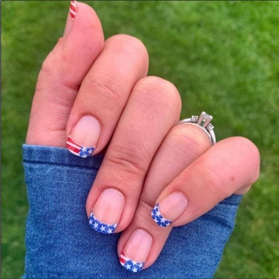 Simple Fourth of July nails short designs are not only practical but can also be incredibly chic. Tiny flags, stars, or stripes on short nails create a cute and fuss-free look.