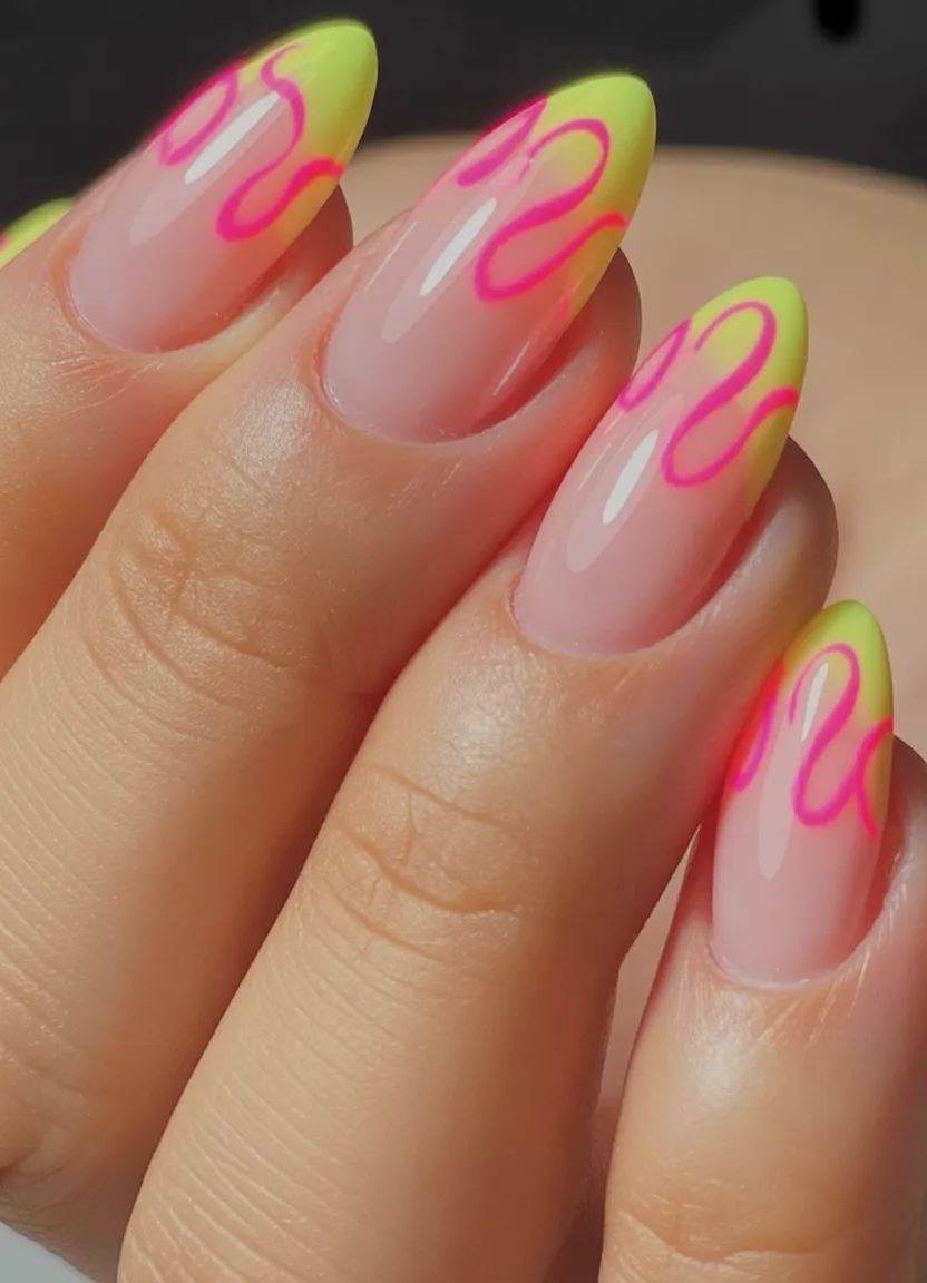1. Neon Lime Almond Swirls