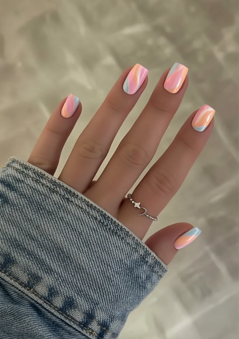 This is a gorgeous option if you prefer short nails or a soft square shape. The marble effect adds depth without overwhelming smaller lengths. It’s low-fuss but impactful, making it a cute choice for busy weeks when you still want that subtle Art design touch.