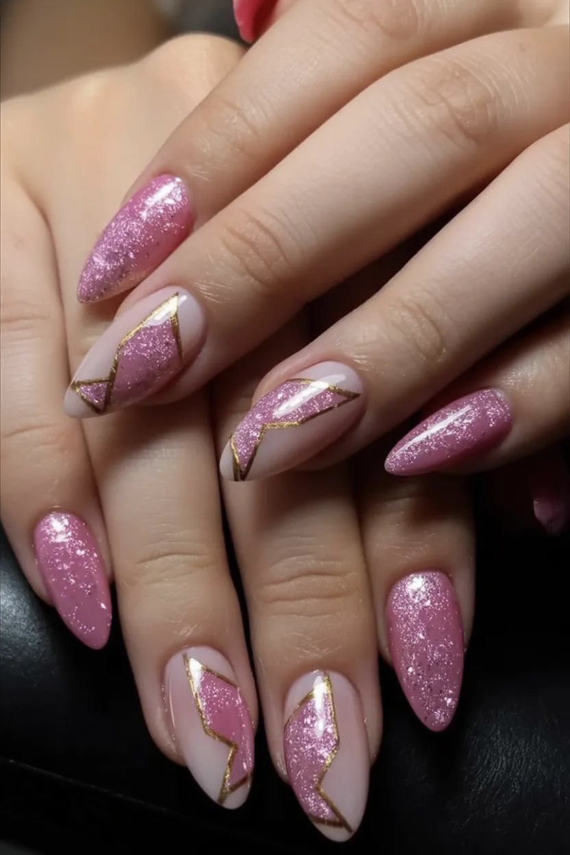 This manicure feels like modern art for your hands. The pink cat-eye shimmer creates softness, while the sharp gold lines bring structure and contrast. It’s feminine, but with an edge—perfect if you like your beauty choices to feel a little unexpected.