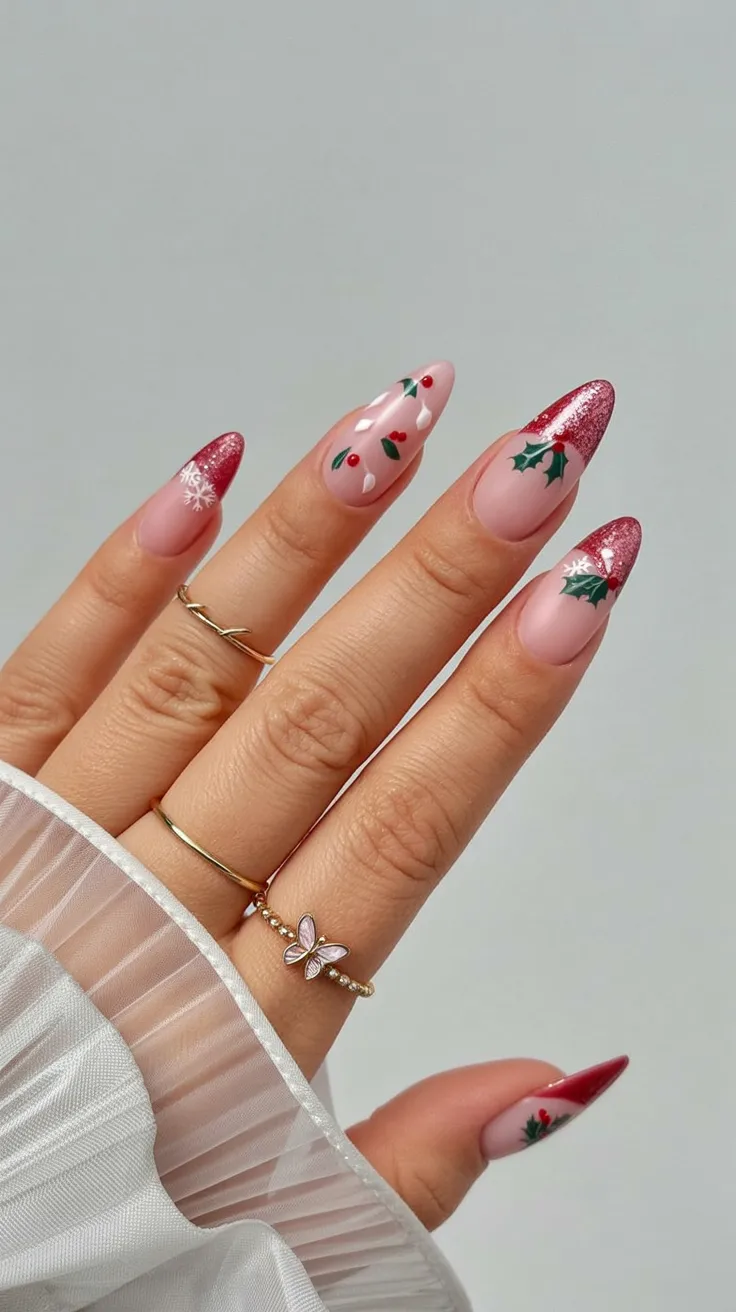 There’s a lighthearted charm to this look that feels instantly uplifting. The pink cat-eye base is gentle and glowy, while the tiny seasonal details add personality without overwhelming the design. It feels joyful, like a little reminder to enjoy the moment.