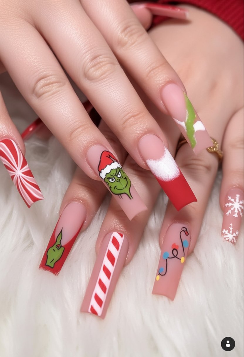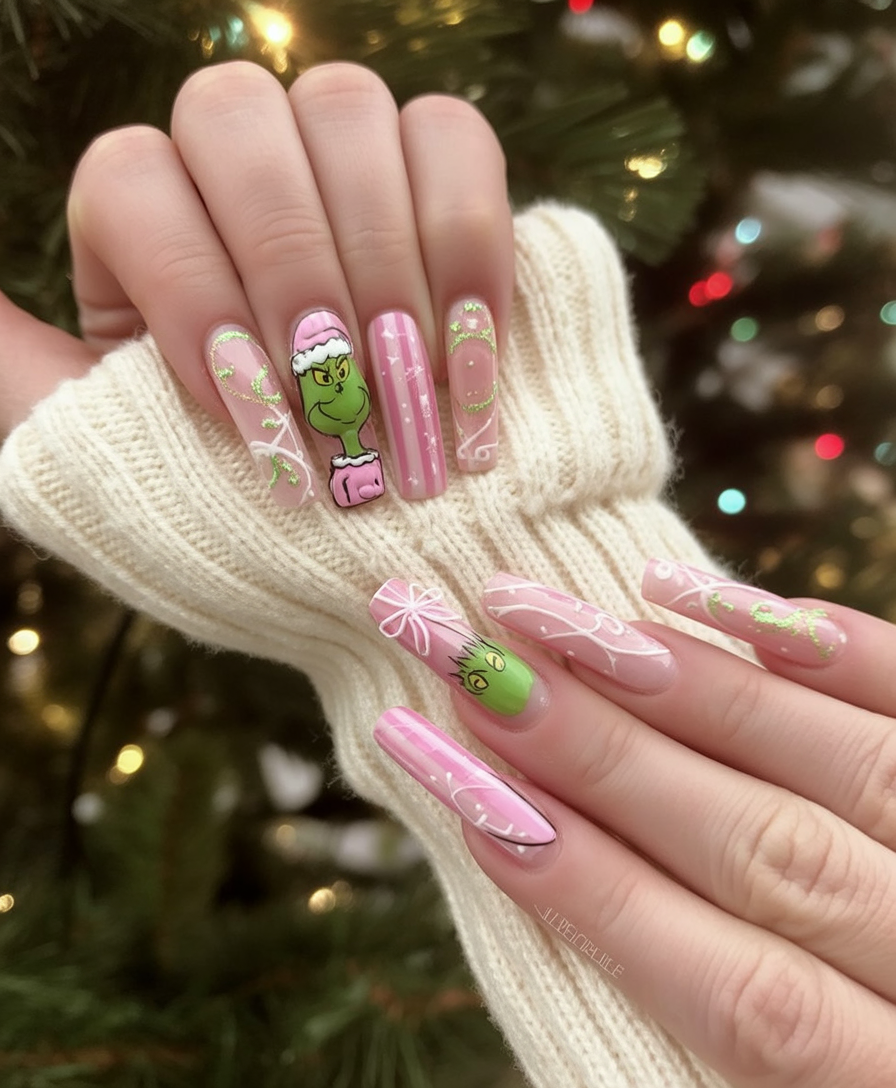 16. Cartoon Grinch Nails