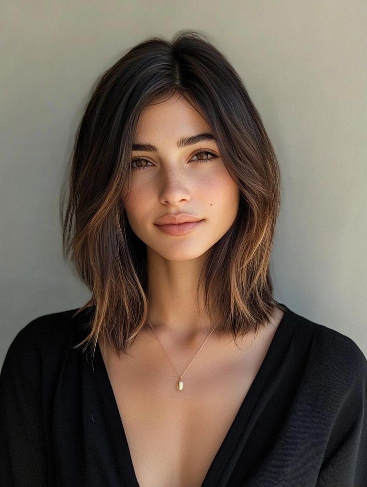 This lob is the epitome of natural beauty, featuring soft, face-framing layers that enhance its natural texture. The warm brunette tones complement most skin tones, making it a go-to choice for women seeking understated elegance. The layers add volume without overwhelming, making it ideal for fine hair.