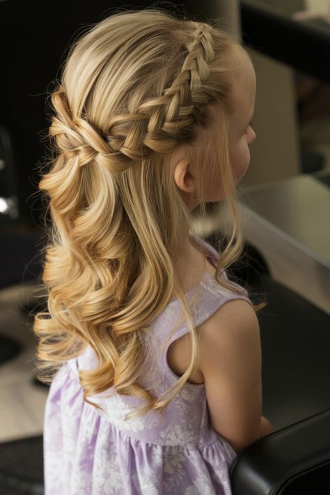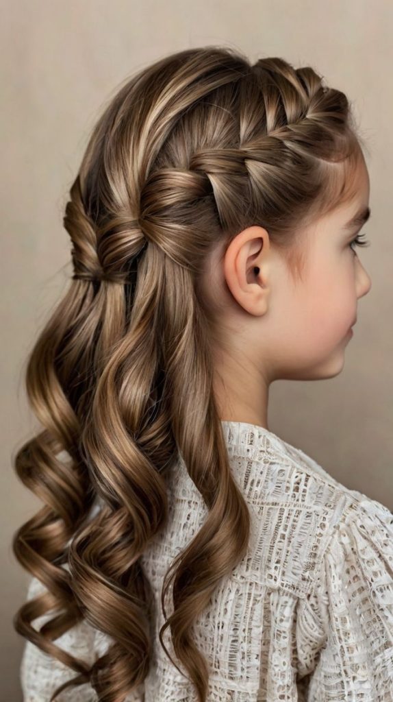 The waterfall braid is a classic that never goes out of style. Combined with soft curls, this hairstyle is perfect for formal occasions like weddings, recitals, or family gatherings. The cascading effect of the braid adds a touch of sophistication while keeping the overall look youthful and charming.