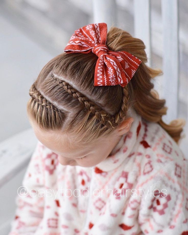 Ensure the braids are tight and secure to keep the hairstyle intact during active play. The sequin bow adds the perfect finishing touch, making the hairstyle festive and fun.