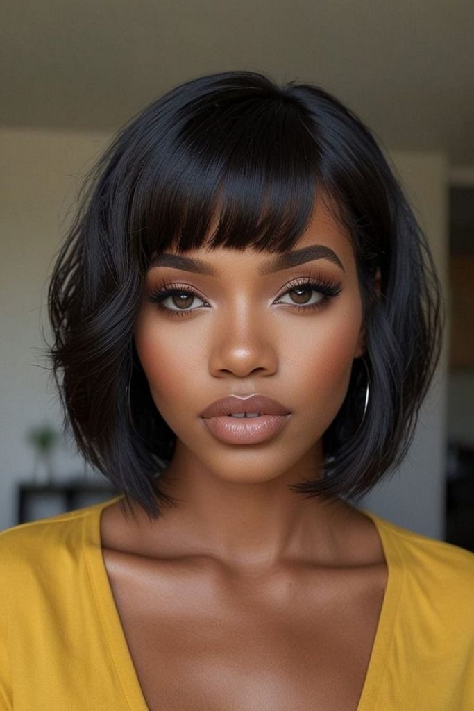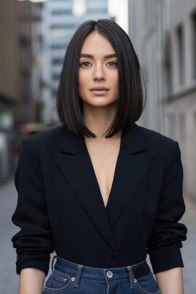 A timeless choice, the blunt bob with fringe is a sleek and modern option for 2025. It’s particularly flattering on medium-length hair and pairs beautifully with both black hair and lighter shades. The sharp cut creates a polished look, perfect for businesswomen or those seeking a sophisticated appearance.