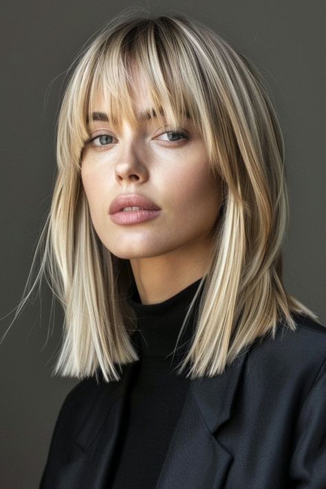 A nod to the 90s, this bob combines wispy bangs with sleek layers, offering a playful yet sophisticated vibe. The soft blonde tones enhance the overall look, making it ideal for casual settings and work environments.