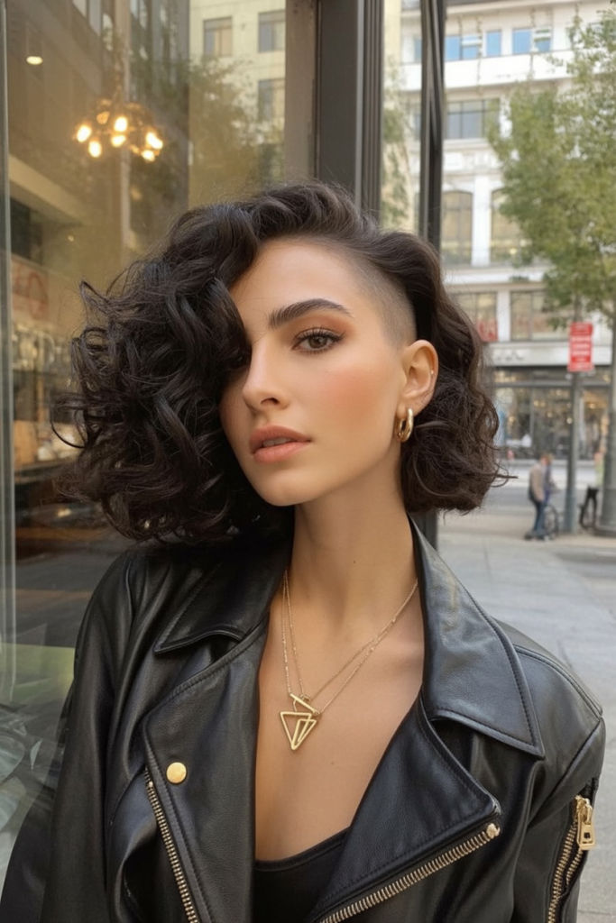 This is a boldest play of voluminous curls and shaved undercut on one side which makes side part a power statement. It’s edgy, fashion-forward, and full of personality.