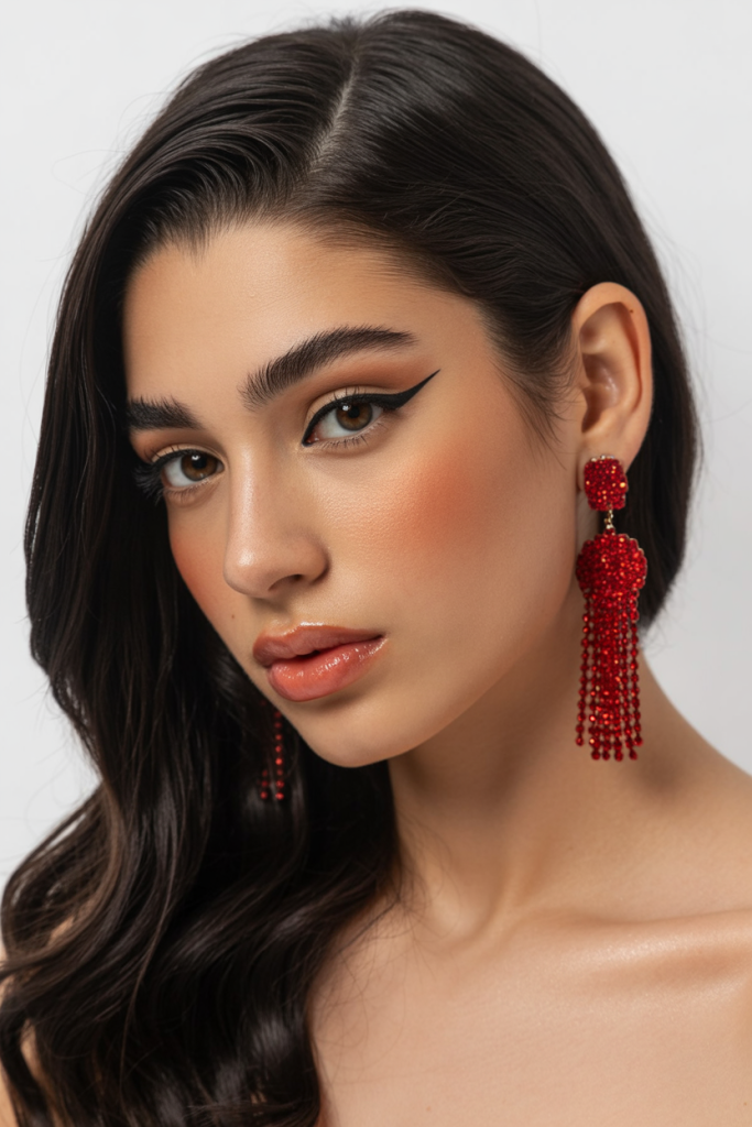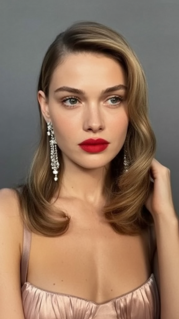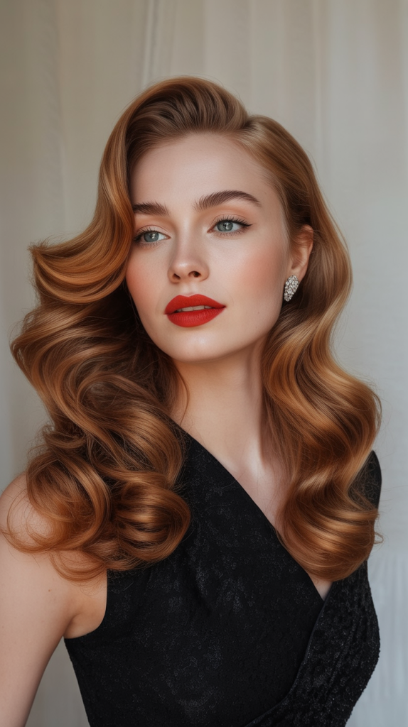 Medium to long hair can be best suited to this look; the secret to this style would be well-prepared waves using a curling iron and fixed on clips. Wear with loud statement earrings and a red lip to put it all the way on.