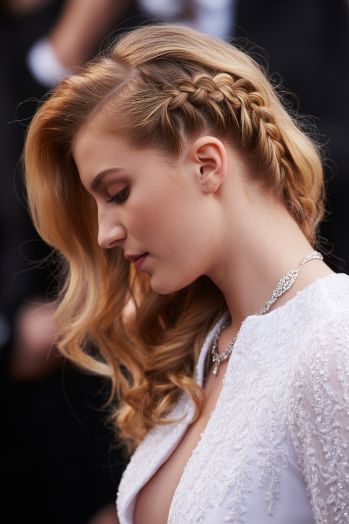 A sleek wave look is given a special touch of introducing a braid tucked right behind the parting. Said nice touch of detail provides a rustic feel without disheveling the appearance and making it look too red-carpet.
