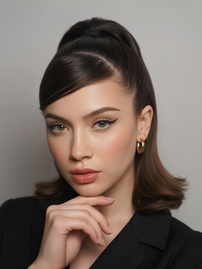 A smooth high ponytail has already been on trend and a sleek side flip across the front gives it a fresh new update. It combines the most right amount of fun and high-end it is throughout an image that is modern with a faint sense of retro. With the neat top and the ends tucked in, the overall appearance is serene and in an uplifted mode that is difficult to ignore.