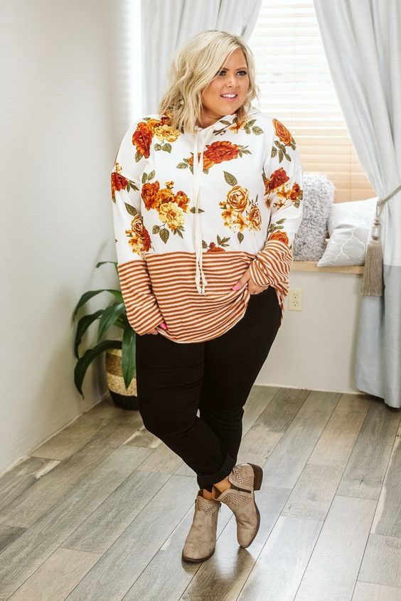15. Floral Hoodie with Black Pants