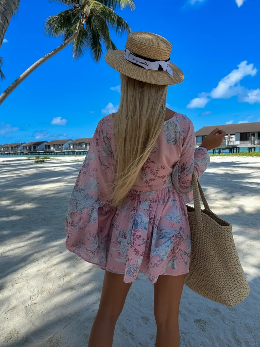 If your summer mood leans romantic, this is the kind of look that practically writes the story for you. The soft pink floral dress feels light, dreamy, and a little nostalgic in the prettiest way, like a vacation memory you haven’t even made yet. There’s a softness here that feels especially right for warm days, when you want to look put together but still float through the day with ease. Paired with a woven tote and straw hat, it gives that feminine aesthetic so many Women gravitate toward every summer, and for good reason. It feels sweet without being childish, polished without being stiff, and just fresh enough to earn a place in your 2026 Inspo folder.
