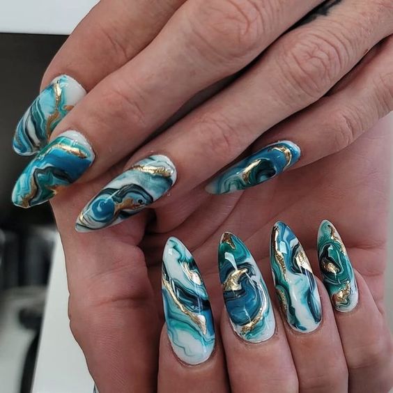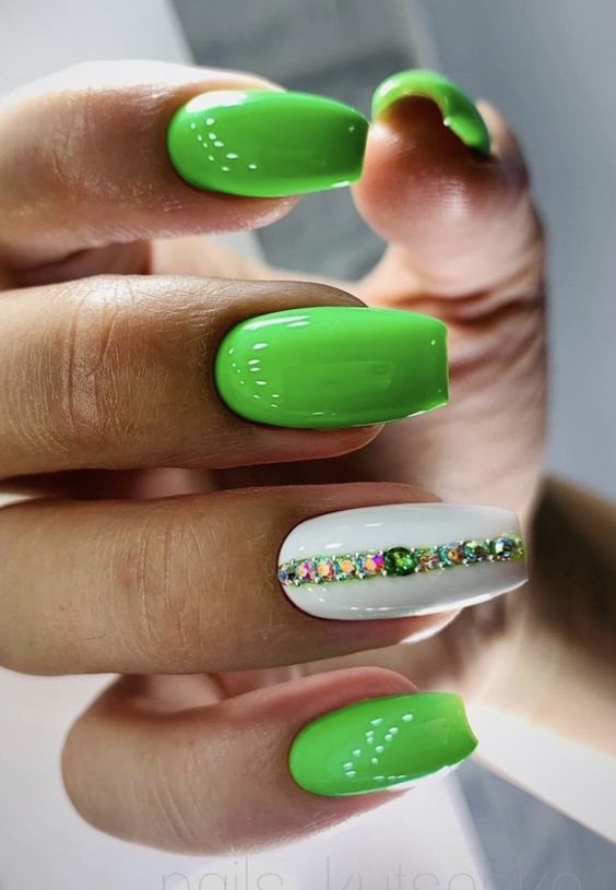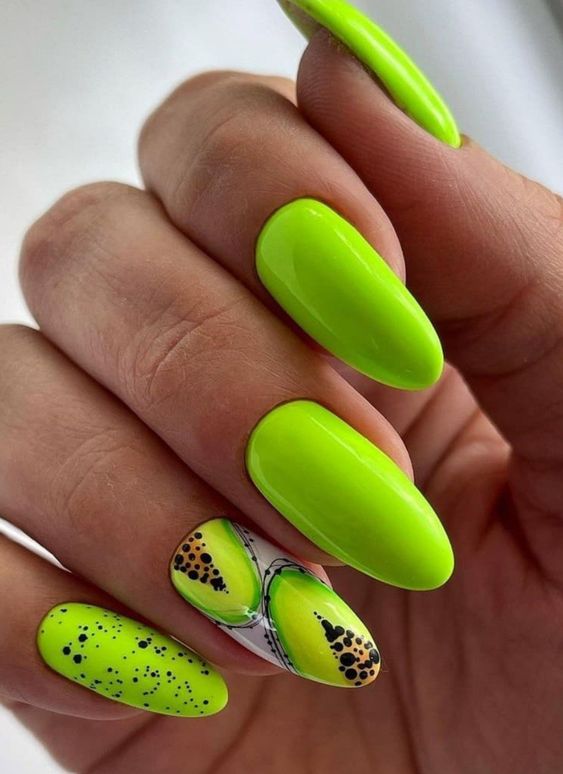 Green in its various shades represents a connection with nature. Opt for mint or lime for a fresh, youthful look, or choose emerald for a more sophisticated vibe. Summer nails colors almond shape look particularly stunning in green.