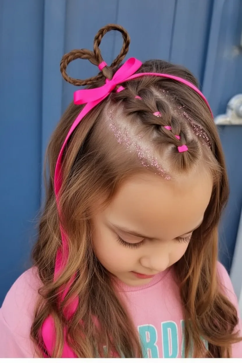 It’s ideal for kids with fine to medium hair who don’t love tight styles. The half-up, half-down approach keeps hair out of the face while still letting lengths flow naturally. Add a touch of sparkle or pastel accents, and you’ve got a look that feels festive without being fussy.