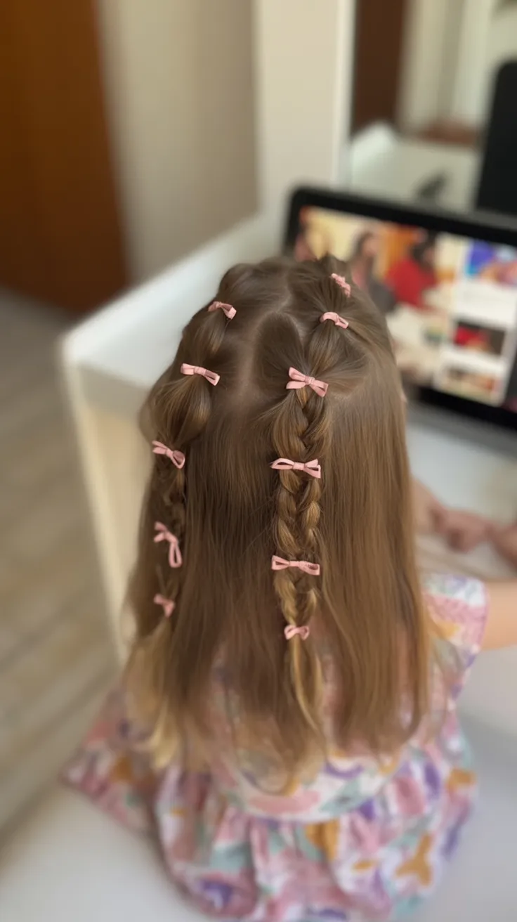 10. Multi-Braid Half-Up with Mini Bows
