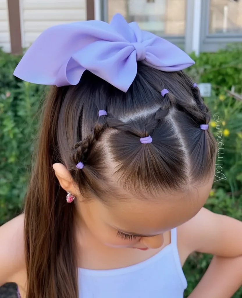 This style is ideal for kids with fine or straight hair, where parting details really stand out. It’s a great choice if you want something different from traditional braids. The structure keeps hair neat, while the ponytail stays comfortable all day—perfect for long celebrations.