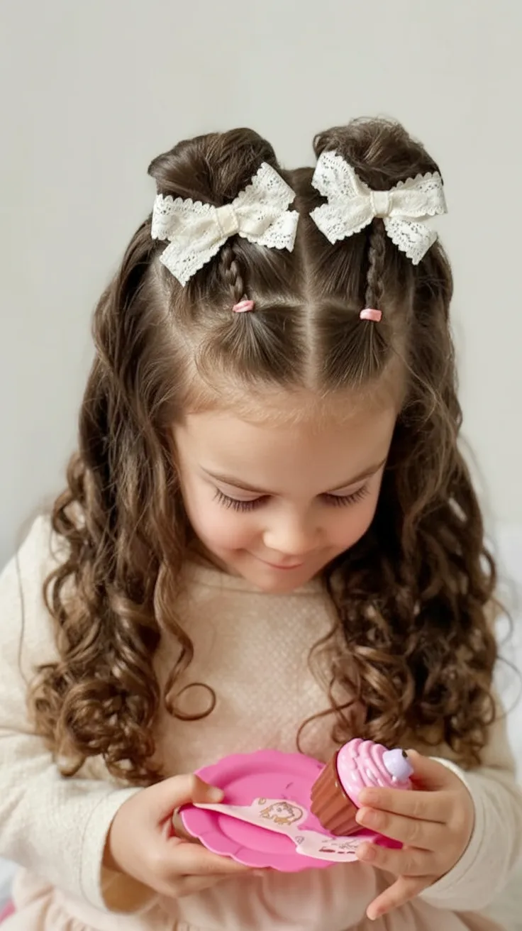 5. Curly Half-Up with Lace Bows