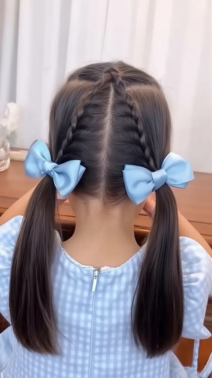 20. Classic Twin Braids with Satin Bows