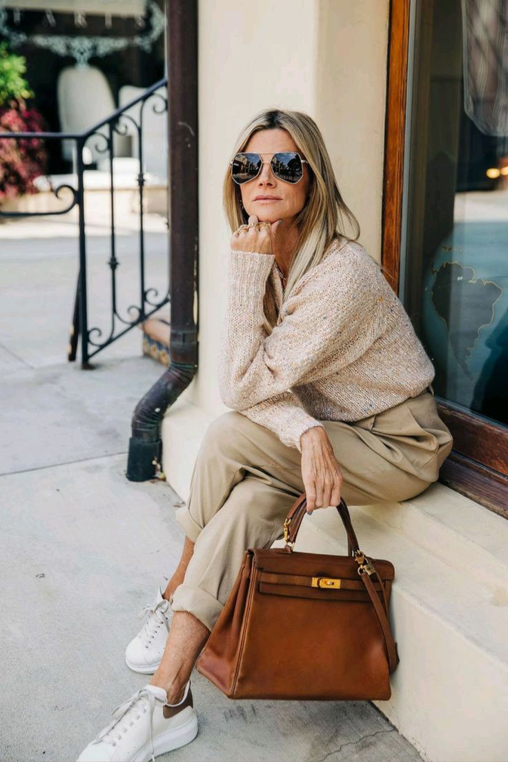 For those who appreciate understated elegance, a cozy sweater paired with tailored trousers provides a casual yet sophisticated look. This ensemble is perfect for a dressy night casual setting, where comfort meets style seamlessly. The neutral palette makes it a versatile choice for any fall evening event.