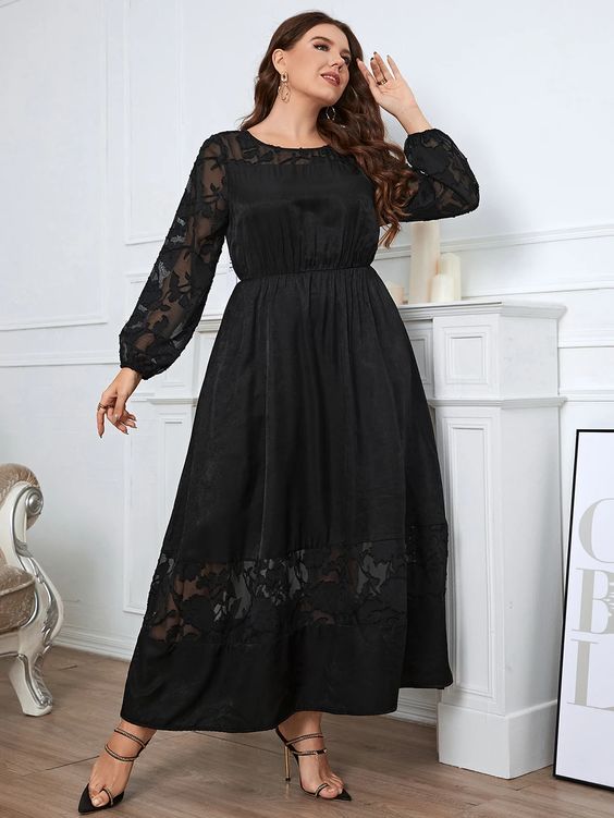 Incorporate a touch of nature’s bloom with this black sheer dress adorned with delicate floral patterns. Perfect for summer to fall transition outfits evening, this outfit pairs beautifully with boots and offers a lightweight option for those unpredictable fall temperatures. It’s an epitome of fall outfits evening classy.