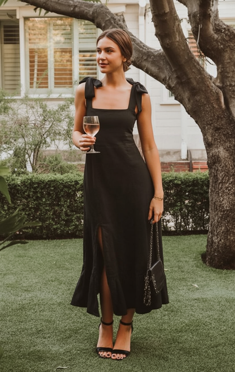 5. Classic Black Midi with Bow Straps for Effortless Evenings