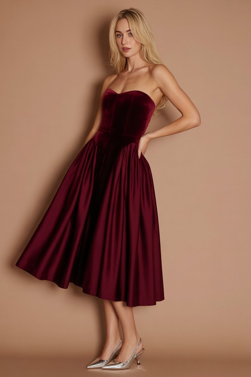 15. Velvet Midi Dress in Merlot for Winter Black Tie Magic