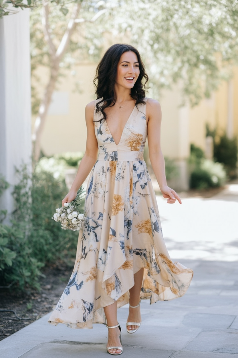 2. Pastel Floral High-Low Dress for Airy Spring Ceremonies