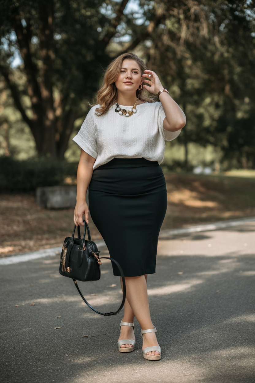 7. Curvy-Friendly Pencil Skirt And Textured Top