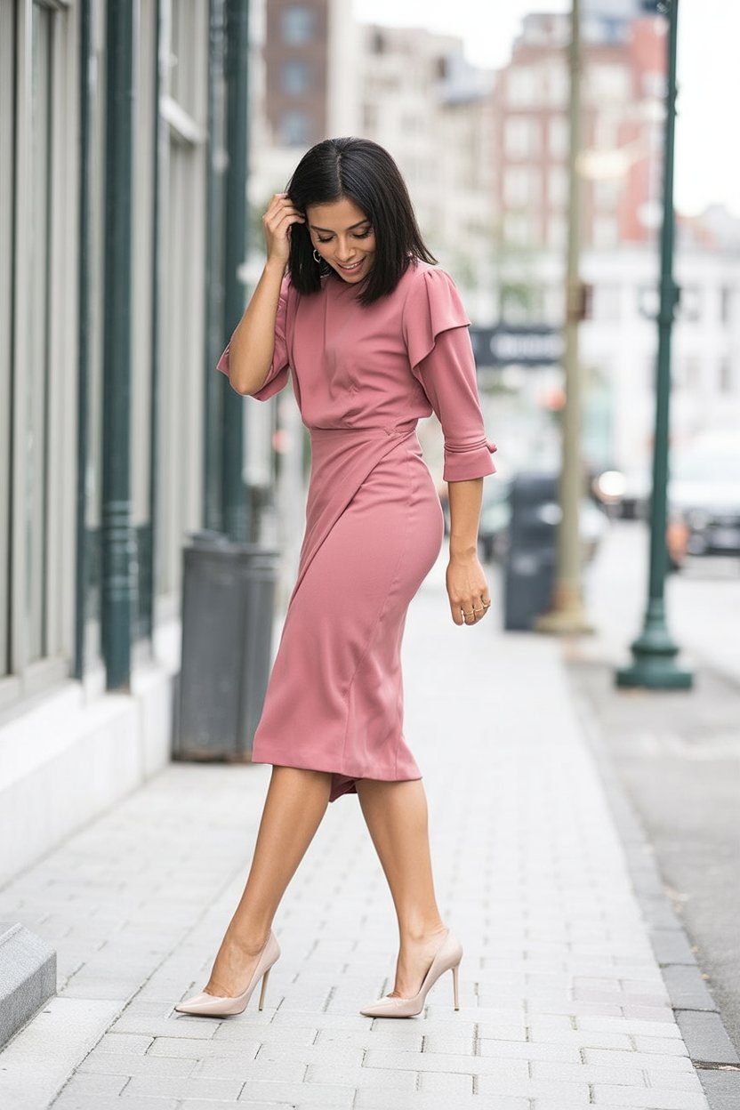 13. Dusty Rose Wrap Dress For Polished Femininity