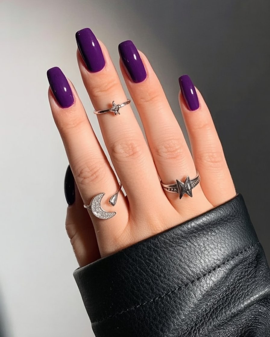 There’s power in a saturated purple, especially on a long square. The shade reads luxurious—like velvet at night—while the clean silhouette keeps it modern. One coat looks pretty; two coats look expensive. You’ll notice how it flatters jewelry and deepens every outfit, from a leather jacket to a slip dress. It’s simple, yes, but never shy. Current trends: Jewel tones are big for 2026 because they photograph beautifully and flatter every undertone. Swap your usual red for this regal purple when you want drama without glitter. Keep nails parallel for that tailored shape, and finish with ultra-gloss. If you’re playful, add a single star decal or minimal chrome on one finger; otherwise, let the color do the talking.