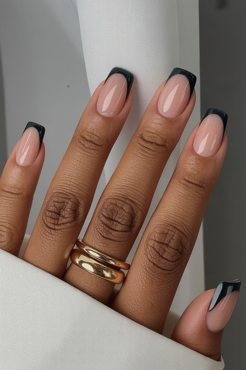 Minimal, polished, and endlessly chic—this short square French tip swaps white for black to sharpen the mood. The nude base stays natural and glossy, so the dark smile line reads like clean eyeliner for your fingertips. It’s sleek with blazers, effortless with denim, and just edgy enough for date night. If you love simple designs that still earn compliments, this is your go-to. What makes it special: the short square keeps typing and workouts easy while serving crisp geometry. The contrast is softer than full black polish yet more modern than classic white, so it slots into every season, summer included. Ask for a micro-thin tip and glassy top coat; the result looks couture and grows out gracefully. Save it to your Pinterest board under ideas you’ll actually wear.