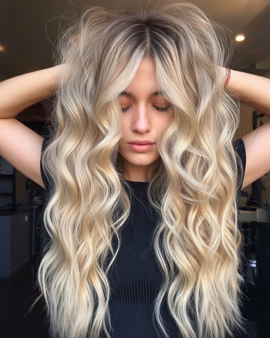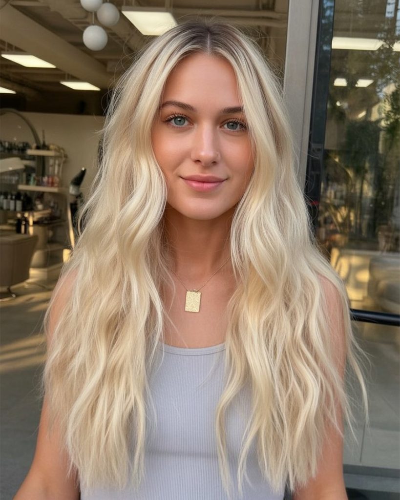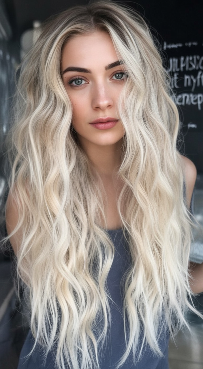 To keep this style looking fresh, request seamless balayage from your colorist and subtle face-framing highlights, maintaining it with a cool blonde toner every few weeks. Then, at home, work a lightweight gloss or oil through the mids and ends and copy the texture with a fast beachy waves tutorial: bend sections around a large iron, keeping the last inch free for that easy, modern finish. Just apply a bit of texturizing spray to the roots to keep that volume soft and touchable all day long.