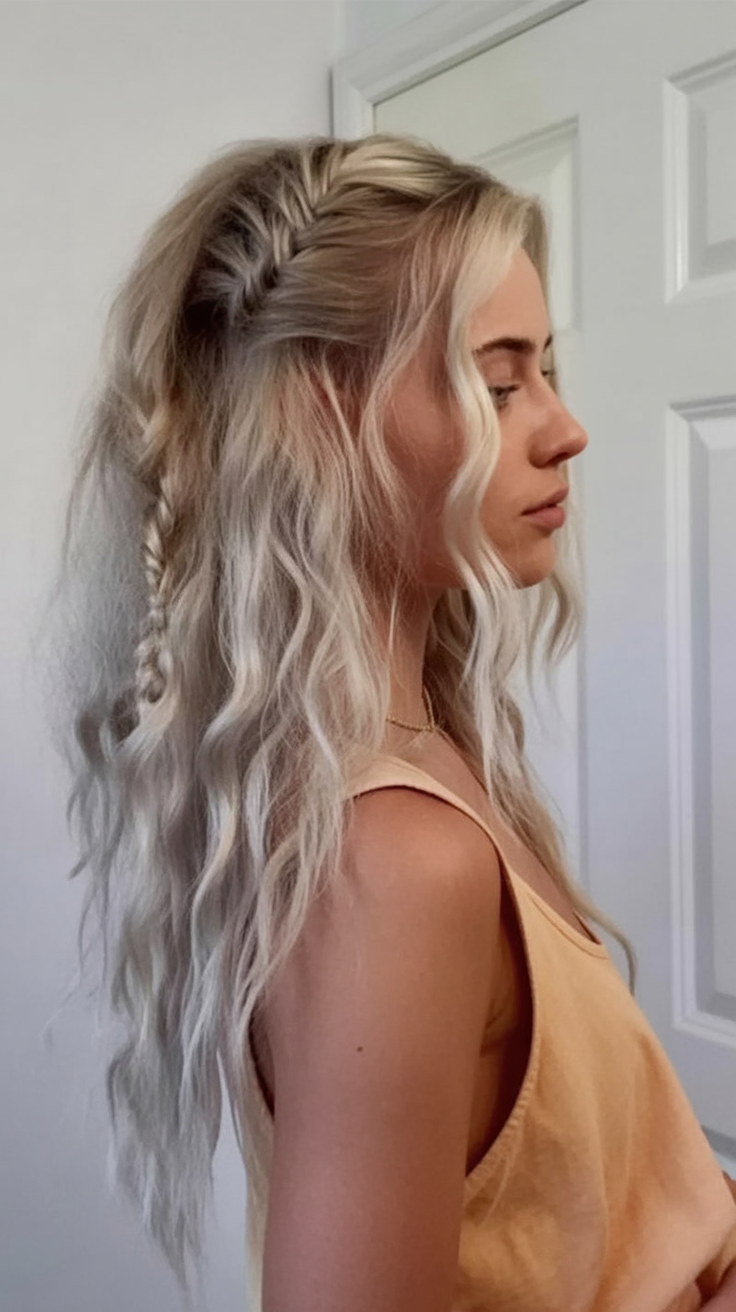 The best part is how low-maintenance this style is once the braid is in place. It keeps your summer hair color protected from wind and tangles, and you can easily take it from the pool to dinner just by loosening a few pieces around the face. It’s great for medium or long hair and works even better if you already have a bit of texture from a beachy waves tutorial or salt spray. Just smooth a little oil over the ends, and you’re done for the whole day.