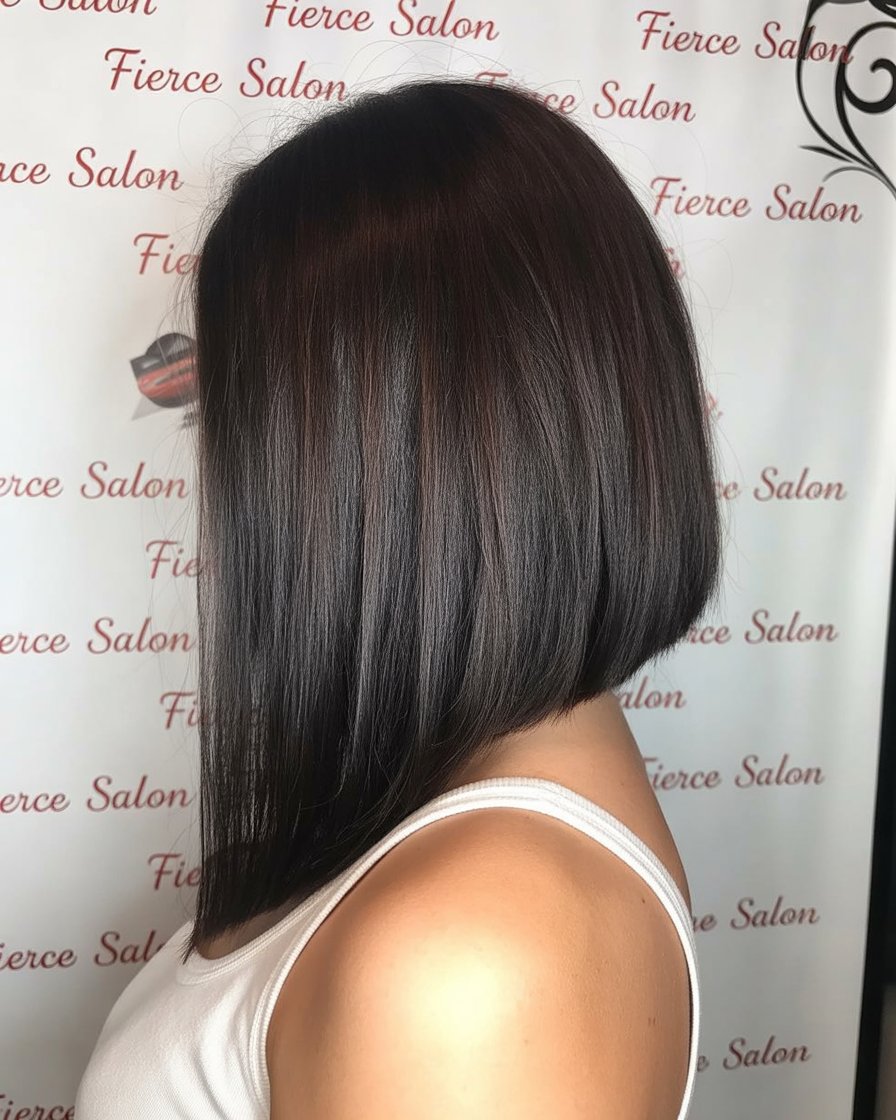 \n This sleek brown bob is all about clean lines and a quiet confidence. Its cut—precise and angled to be shorter at the back and longer toward the front—hugs the jawline as if it’s a tailored blazer. The shine is mirror-smooth, and your entire look has a straight, glass-hair effect that looks strong but polished like nothing else.