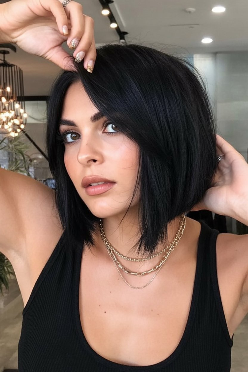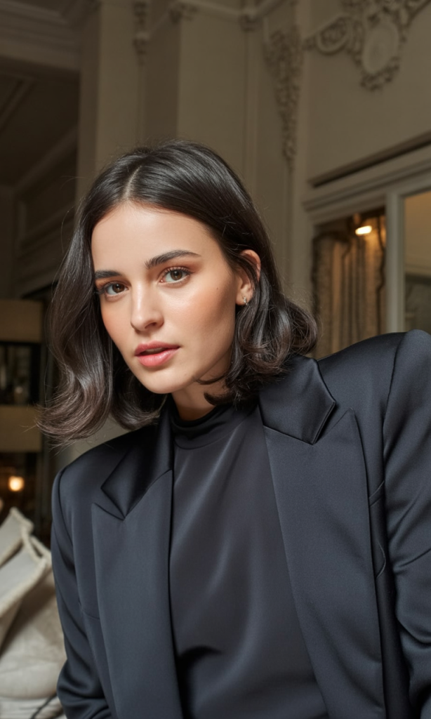 To play up the look, think about what you wear with it—this cut loves gold hoops, layered necklaces, and a neutral lip. It’s especially flattering on women who like clean necklines and want their shoulders and collarbones to stand out. A little shine spray, brushed brows, and this bob, and you suddenly look like you planned your whole outfit, even if you got dressed in five minutes. It’s a perfect match for evenings out when you want simple hair that still reads as full-on modern.