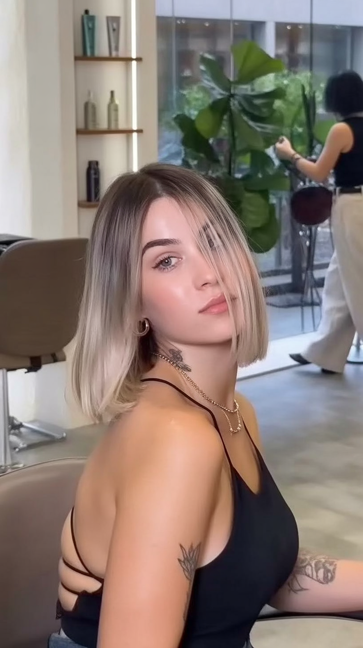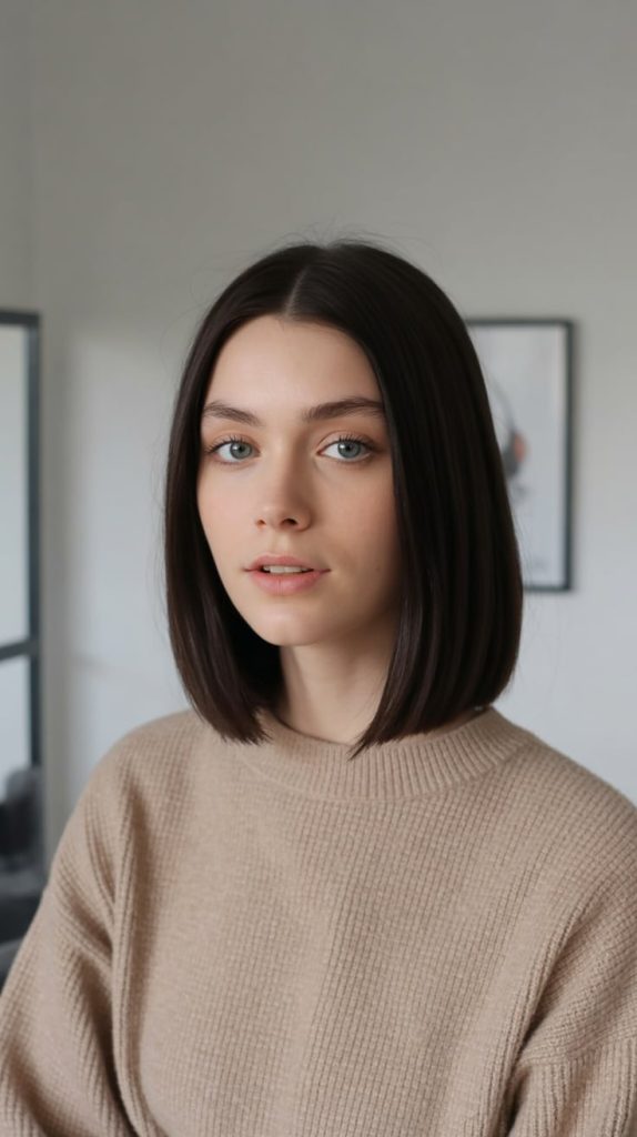 The emotional payoff of this cut cannot be overstated: it delivers that “fresh start” sensation whenever you glance in the mirror. If you’re aching for a reset—new job, new routine, or just a fresh start—a clean bob like this is one quiet but potent way to signal it. It’s also an ideal style if you’re going from long hair to short hair, as it is still chic and feels classic too. Add a sheer lip and delicate jewelry, and you are in main-character mode in no time.