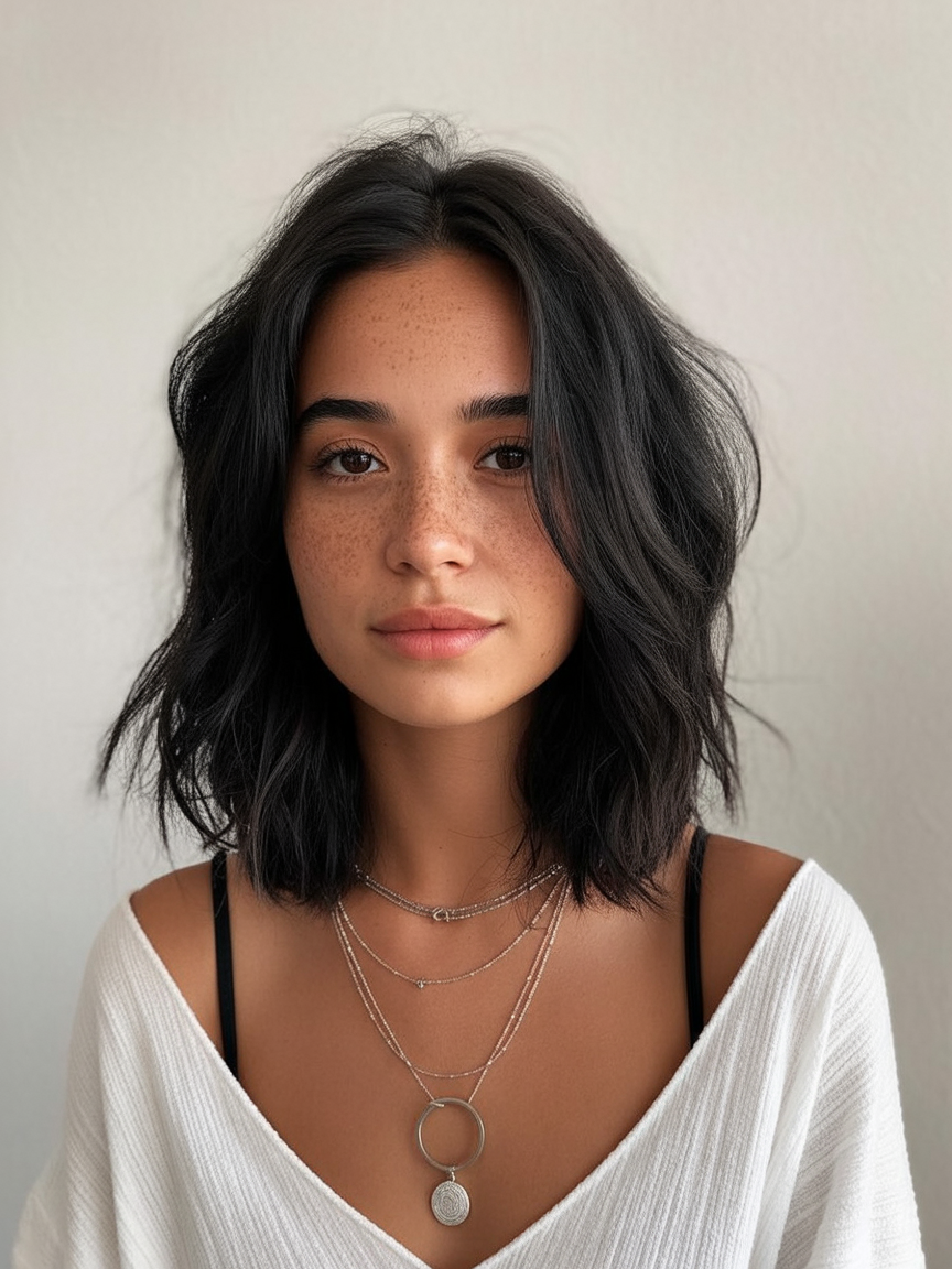 The vibe here is easygoing and optimistic, like you’re always just coming back from a weekend away. It has that breezy attitude that pairs perfectly with a bare face, a touch of bronzer, and maybe a gloss. Whether you’re headed to the office or out for patio drinks, this bob reads as happy, approachable, and quietly stylish—never trying too hard, but always looking ready for a photo.