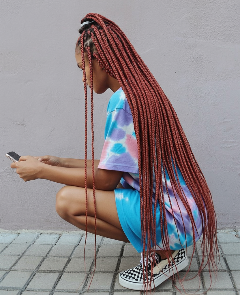 9. Jumbo Extra-Long Auburn Ponytail Braids
