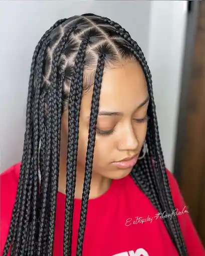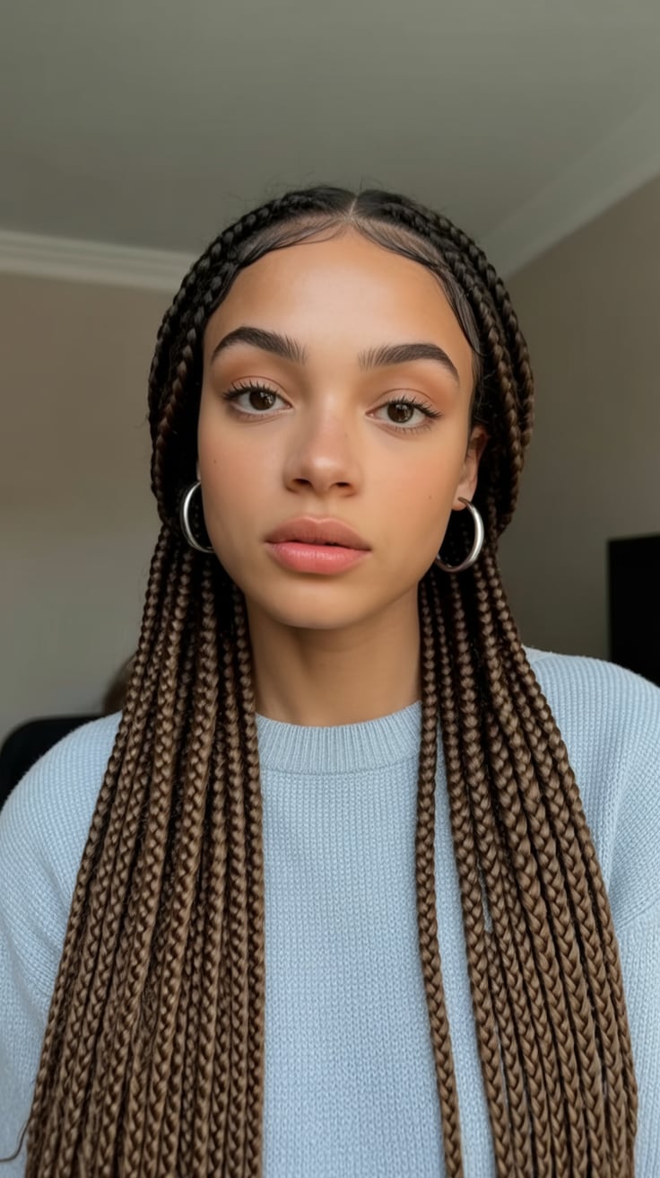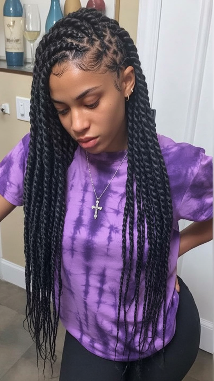 This is one of those styles that feels bold but is still totally wearable—thicker braids with a clean, sculpted base that makes your whole look feel intentional. There’s something powerful about Jumbo braids: they’re statement-making but also practical, like you’re choosing ease and impact at the same time.