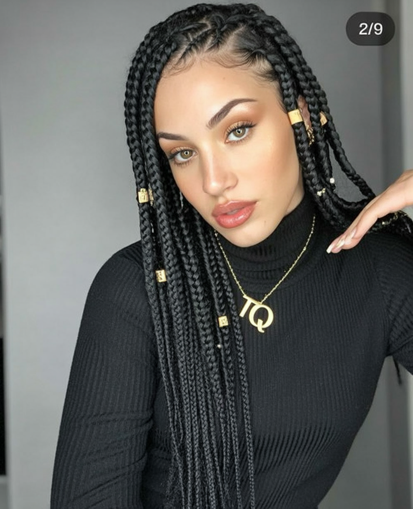 Nothing says “classic with a twist” like sleek black braids dressed up with a few gold details. The finish feels sharp and editorial, but it’s still totally wearable for real life—work meetings, dinner dates, or just being the most put-together person at Target. Those little cuffs catch the light in a subtle, expensive way.