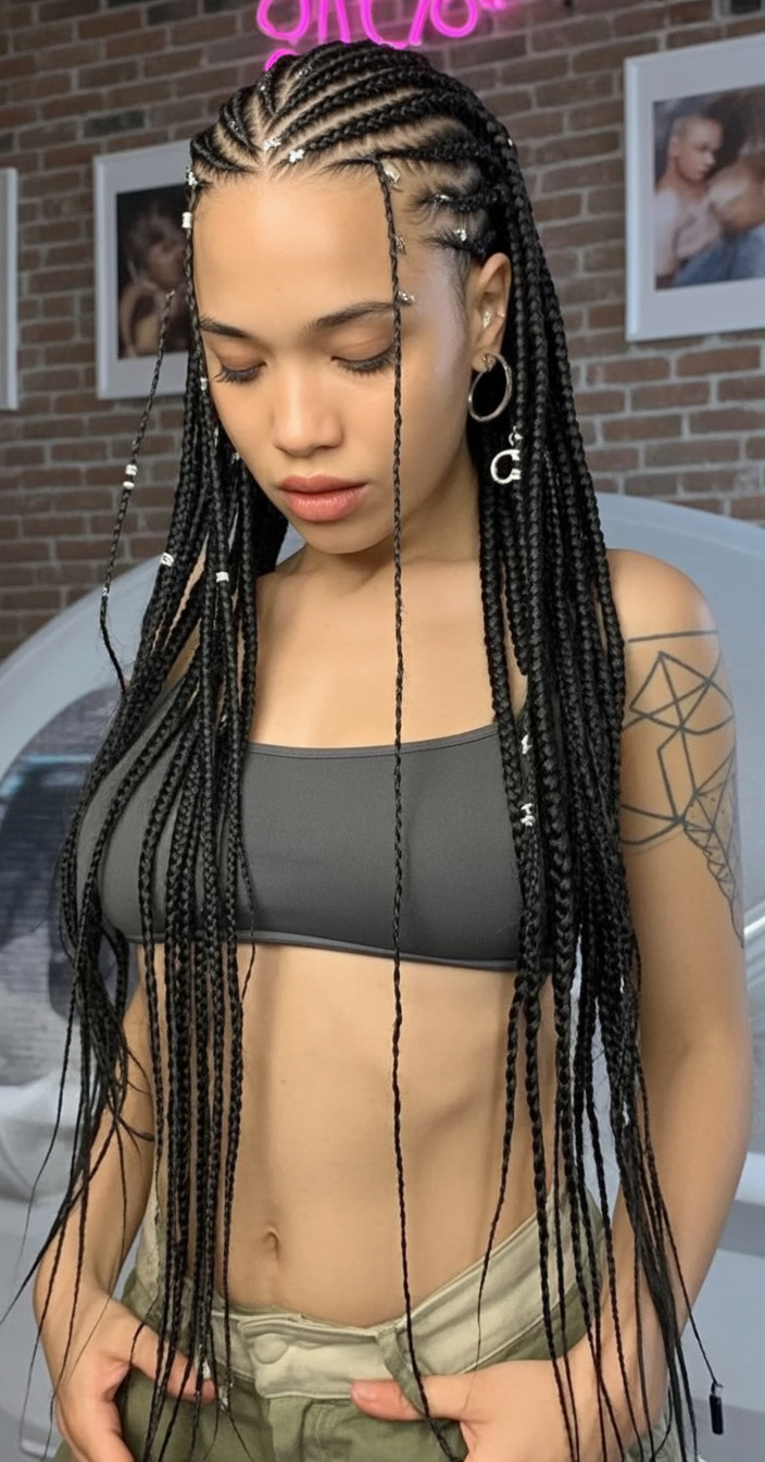 In 2026, we’re seeing more mixes of cornrows and box braids because they photograph beautifully and grow out in a flattering way. If you love a Fulani moment, ask for the front braids to be neat and symmetrical, then finish the lengths with a few accessories (cuffs or beads) placed intentionally, not everywhere. This is one of those styles that can swing cute for daytime or elevated for night—just swap your hoops and keep the edges laid with a light gel for a clean finish.