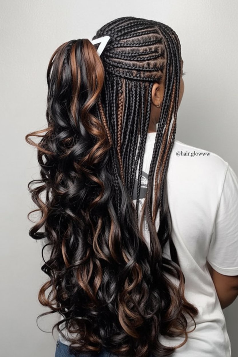 20. Half Cornrows and Half Box Braids with Curly Ponytail