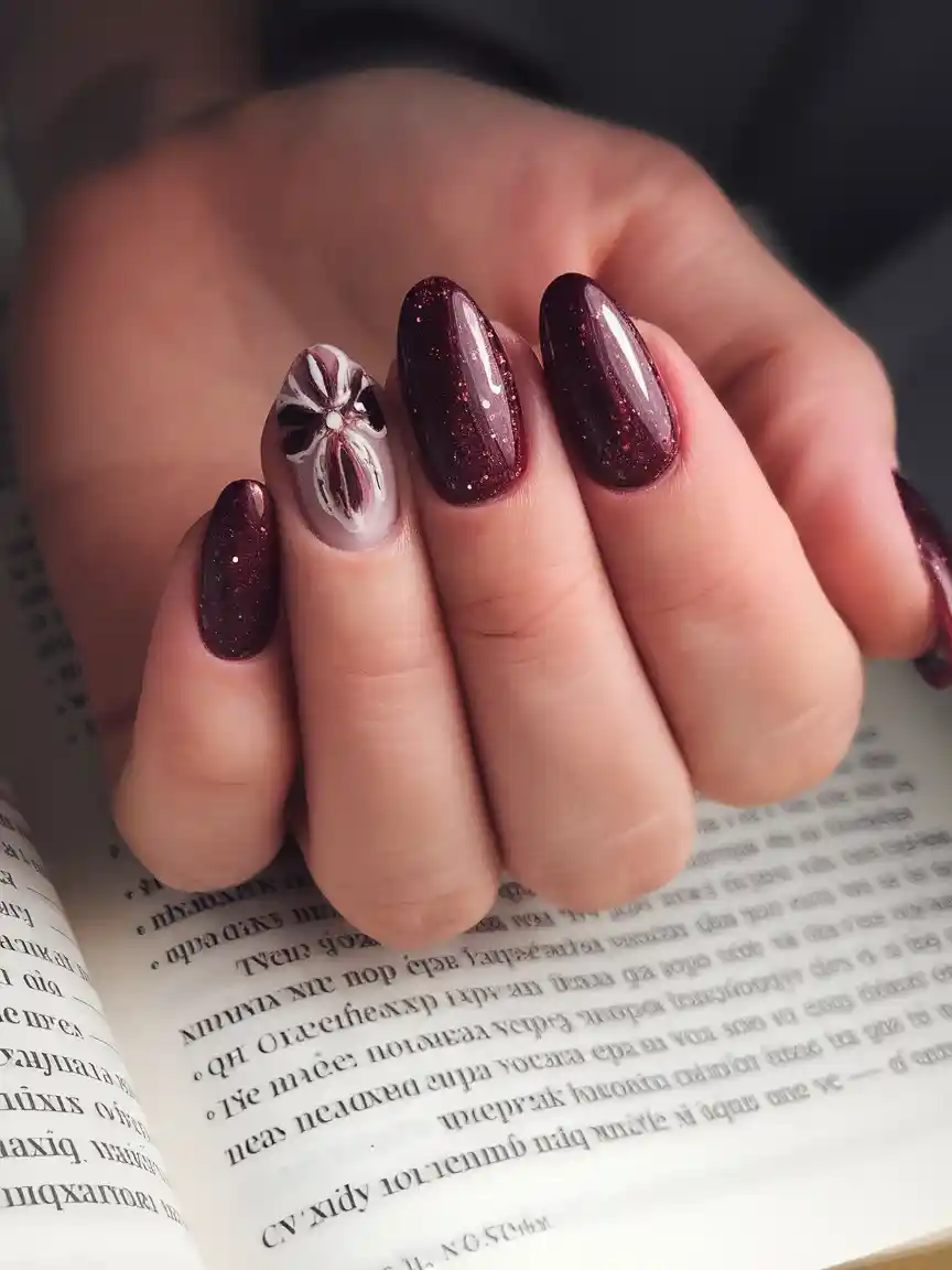 The style best suits Inspo short and medium length almond shapes, and also looks perfect on dark skin. Assuming you are in love with burgundy nails with added glitter, but you desire more contrast, this is the daring update that your nail regimen has been longing since 2025.