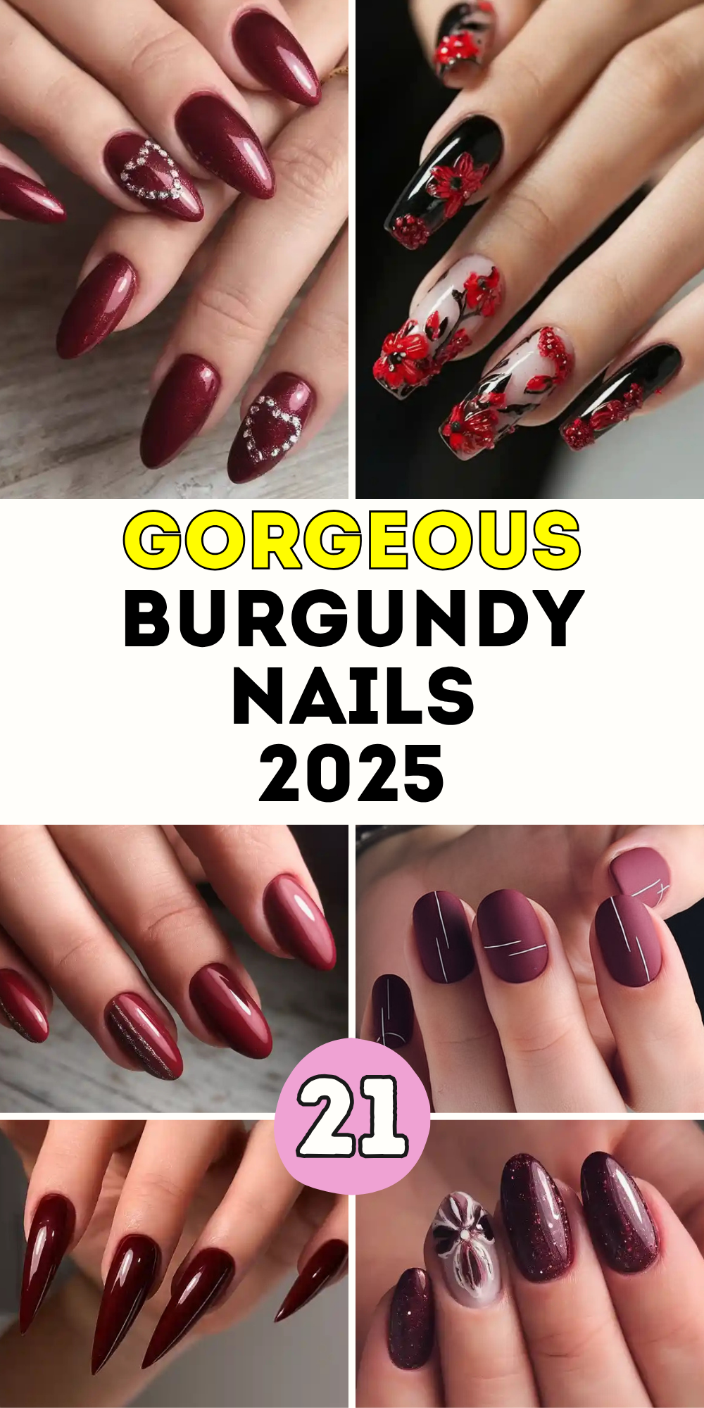 Burgundy nail colors just always had something magical about them, deep, classy and slightly mysterious. In 2025, this classical shade is getting the makeover it long needed with new designs, textures that came out of the blue, and childish detailing. No matter what your style is when it comes to doing your nails (are you a minimalist but prefer a sleek polish or do you go over the top with glitter and art) there is a burgundy nail polish that is out to match your vibe. Are you ready? Well, then, we will explore 21 burgundy nail concepts to make you book the next appointment quicker than you can utter the word wine red perfection.