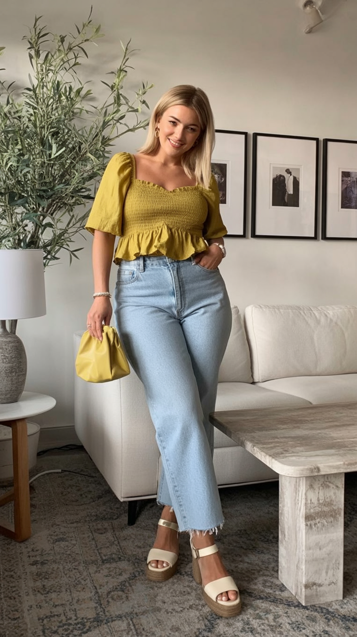 This outfit is one that has the immediate effect of boosting your mood simply by putting it on and playing with its various parts. The chartreuse color of the smocked top hits all of the right bodice points before trailing down with a romantic stitch into a subtle ruffle, creating that perfect easy, romantic silhouette perfect for lazy afternoons with friends at home or at the park, at least until Labor Day, that is. Paired with straight-leg light-wash jeans and platform sandals, it exudes all of the fun and confident funk and attitude from Casual Outfits 2026 without feeling either cute or incongruous—feminine without ever feeling precious, fun without ever feeling unwearable, and perfect and so accessible whether you’re in your 30s, your 40s, and so on. The coordinating purse, of course, is the final icing on this sweet and fun outfit, and you can hardly ever go wrong keeping things stylish and easy, and so—bonus points! To recreate this style your own way, all you need to do is make the top your focal point and keep all else minimal. The gold hoops, thin bracelet, and blush lip color pick up on warmth without overpowering it. The jeans are super comfortable, so you can totally sport this either for your remote-working schedule, coffee meetings, or even school functions if you need to be all dressed up without necessarily going all out. Simply ditch the platforms if you know you are going to be on your toes all day, or throw on a thin blazer if it turns chilly. Casual fashion trends in 2026 aren’t about changing you; they’re all about allowing you to be your best self. You can effortlessly transition from office attire to weekend fashion and from summer to winter by mixing and matching with some clever pieces such as wide-leg pants, easy dresses, comfortable sneakers, and blazers. Here are 21 fashion ideas you can mix and match with things you already have, without necessarily aiming for perfection but instead exuding ease, confidence, and style.