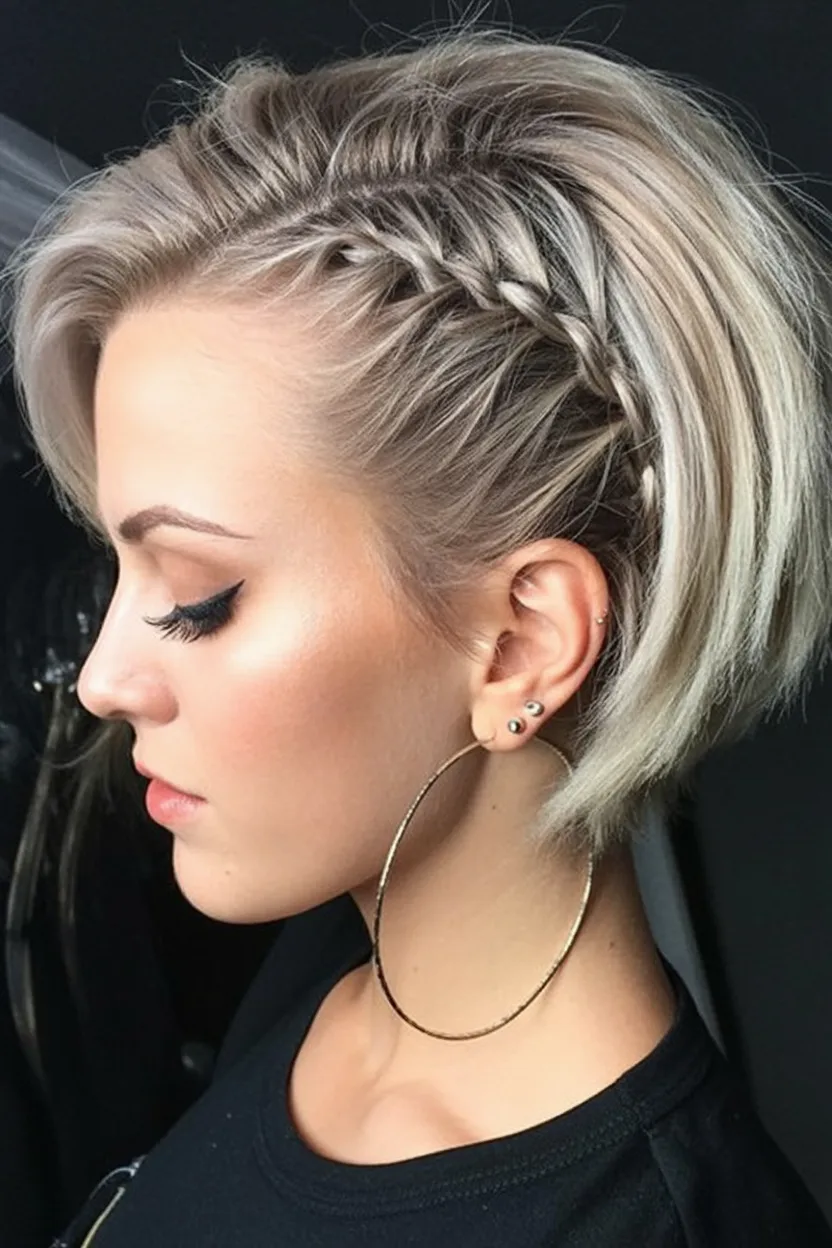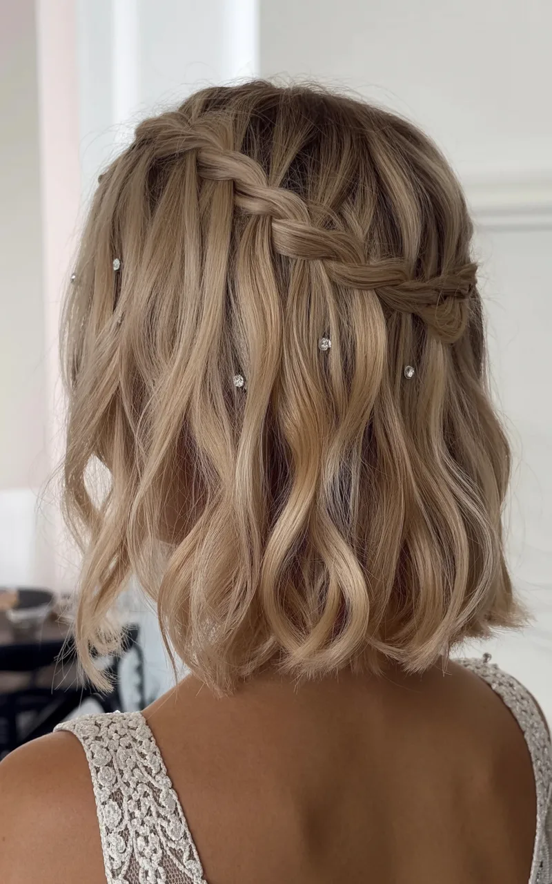 If you are in the mood for a style that brings out confidence and softness at the same time, this is a wonderful one to try. It works especially well on fine to medium hair because the braid creates visual fullness without needing a lot of density. A wave spray or curling wand will help give the ends movement, and adding a few decorative pins or crystals can make it feel even more elevated. This is one of those hairstyles that can make you feel instantly more finished, even if the rest of your look is simple. Short hair really can have that kind of magic when styled this way.